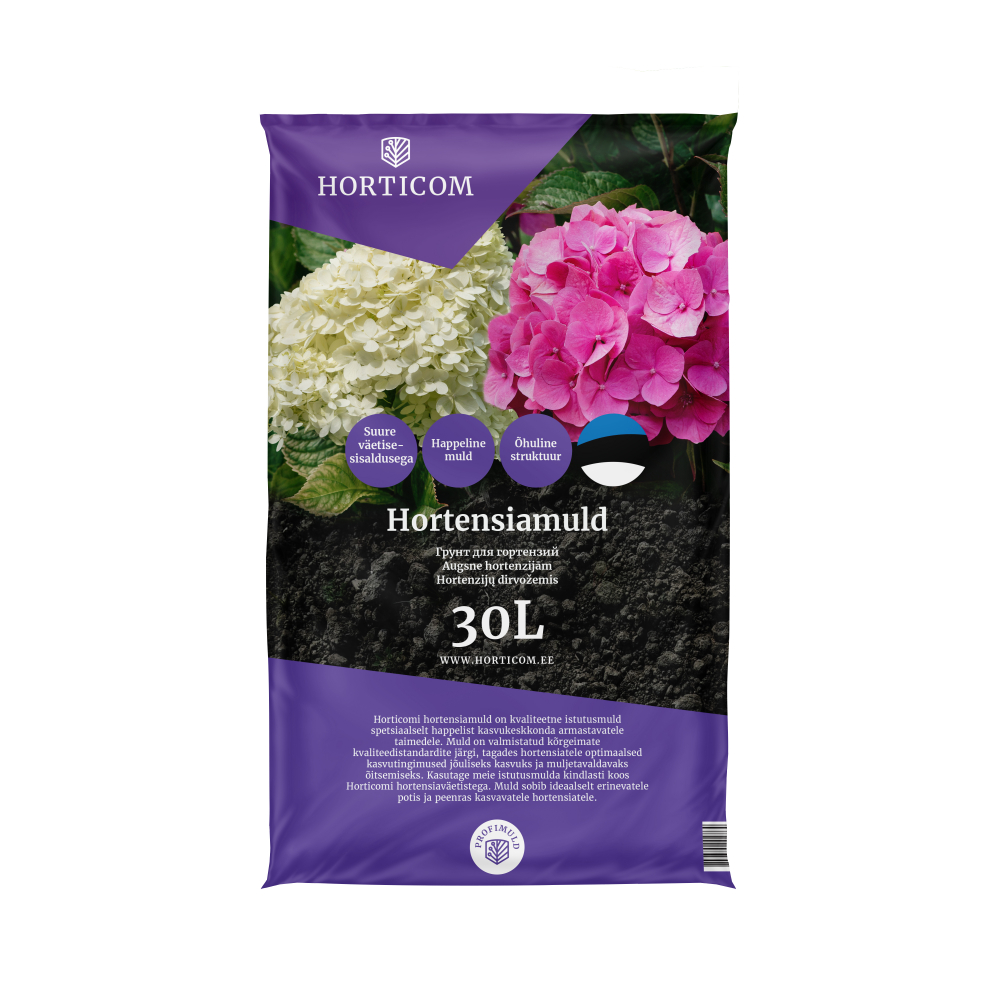 Horticomi hortensiamuld on kvaliteetne istutusmuld spetsiaalselt happelist kasvukeskkonda armastavatele taimedele. Muld on valmistatud kõrgeimate kvaliteedistandardite järgi, tagades hortensiatele optimaalsed kasvutingimused jõuliseks kasvuks ja muljetavaldavaks õitsemiseks. Kasutage meie istutusmulda kindlasti koos Horticomi hortensiaväetistega. Muld sobib ideaalselt erinevatele potis ja peenras kasvavatele hortensiatele.