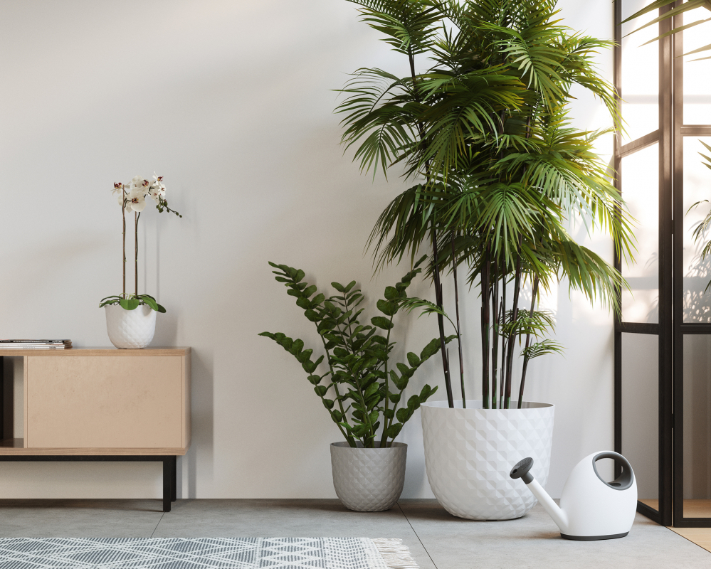 Troopilisest keskkonnast inpireeritud anassiliku tekstuuriga istutuspott. Korgiga äravooluava.