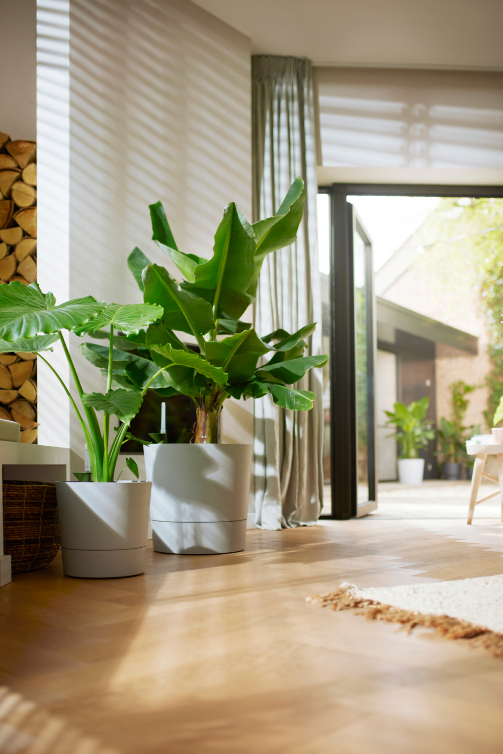 Modernse betoonpoti disainiga sisseehitatud kastmissüsteemiga istutuspott. Komplekt sisaldab ka veetaseme indikaatorit ning potil on all rattad lihtsaks ümberpaigutamiseks.Taaskäideldatav, toodetud 100% taaskasutatud materjalidest tuuleenergia abil. Toote originaalvärv püsib kauem, kuna valmistamisel kasutatakse erilisi värvipigmente.