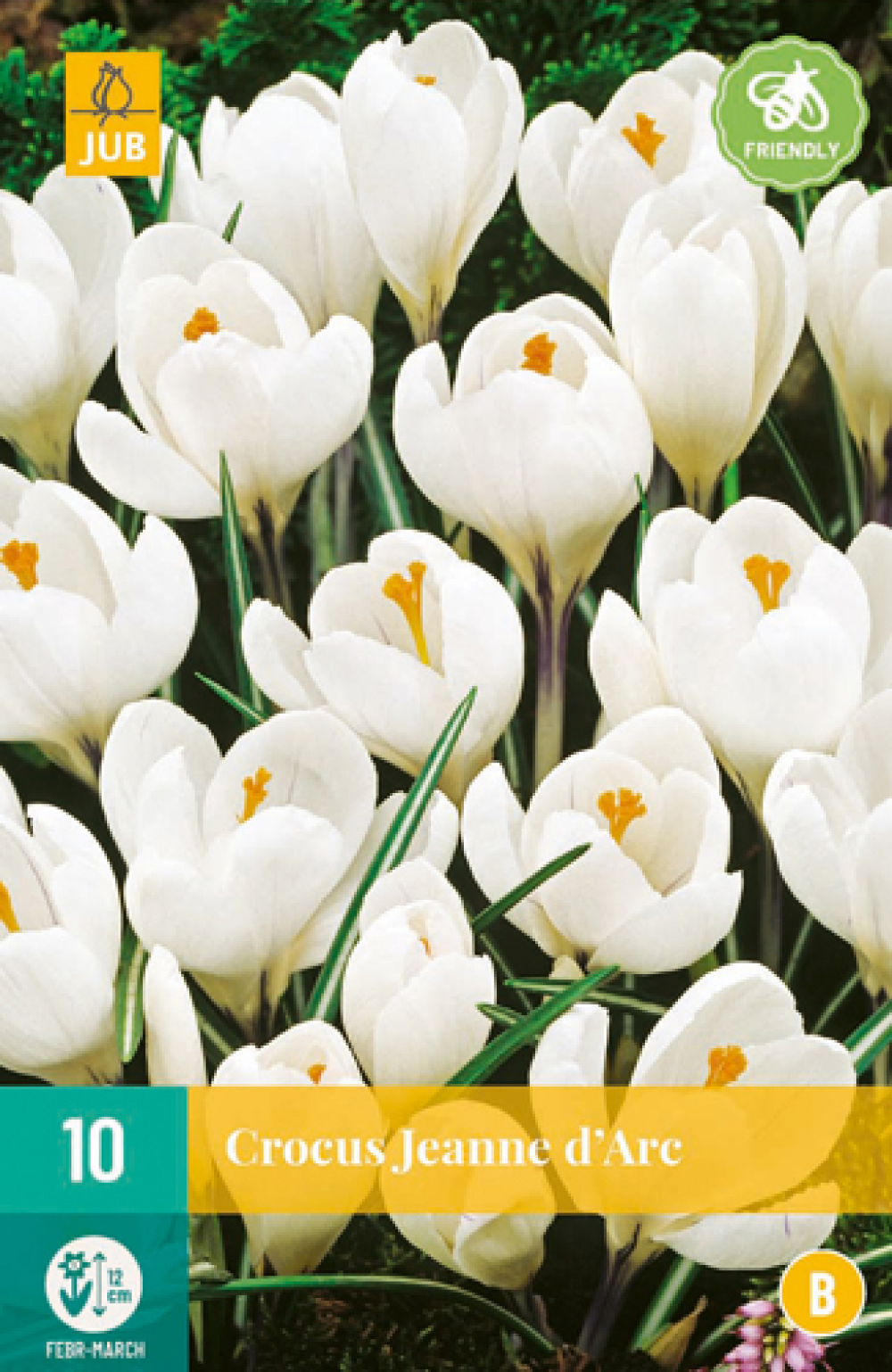 Krookus Jeanne D’Arc on säravvalgete suurte õitega. Õitsevad veebruar – märts. Kevadine krookus sobib ka hästi meie külmemasse ja niiskemasse kliimasse. Parim aeg istutuseks on küll september, kuid soojal sügisel võib seda ka oktoobris teha. Eelistavad parasniisket hea drenaaziga huumusrikast, kobedat aiamulda ja päikesepaistelist või poolvarjulist kasvukohta. Istutada 5 – 7 cm sügavusele, pannes istutasauku kiht liiva mädanike vältimiseks. Paljunevad hästi ja pole eriti nõudlikud, kuid veidi väetamist ja hoolitsust on asjale ainult kasuks. Kevadkrookused võivad ühel kohal kasvada 3 – 5 aastat. Seejärel võetakse peale lehtede kolletumist üles ja istutatakse suuremale pinnale. Parim aeg selleks on hilissuvi. Väikesed krookuste mugulsibulad istutatakse umbes 5cm sügavusele.