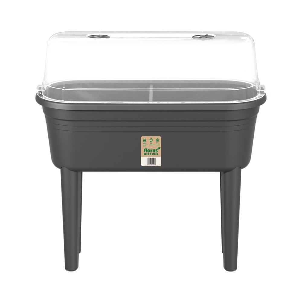 Stabiilne rõduskast kõrgetel jalgadel (eemaldatavad) koos õhutusavadega kuppelkaanega, noorte taimede kasvu soodustamiseks.