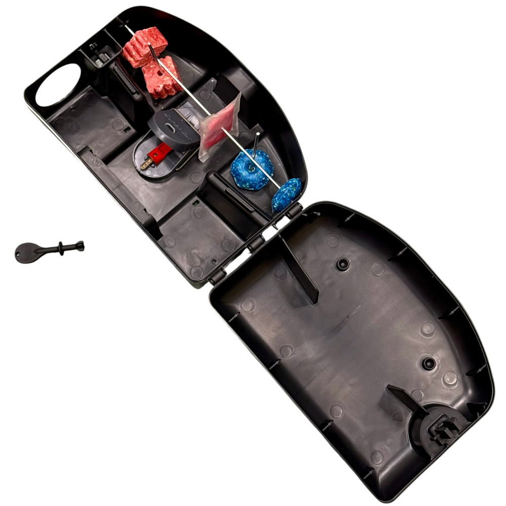 Ohutu ja vastupidav söödamaja hiirtele ja rottidele, mis kaitseb sööta vihma, mustuse ja juhusliku puutumise eest. Sobib kasutamiseks nii siseruumides kui õues. Lukuga süsteem tagab kindla sulgemise, lapsed ja lemmikloomad ei pääse söödale ligi. Valmistatud tugevast, 100% taaskasutatavast polüpropüleenist, mis talub üle 100 kg raskust. Kompaktne ja kergesti puhastatav, ümarate servadega disain tagab ohutuse ja mugavuse.