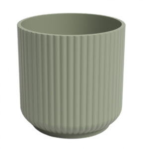 Lihtsa triibulise tekstuurse mustri ning mati pinnaviimistlusega keraamiline ümbrispott siseruumidesse.