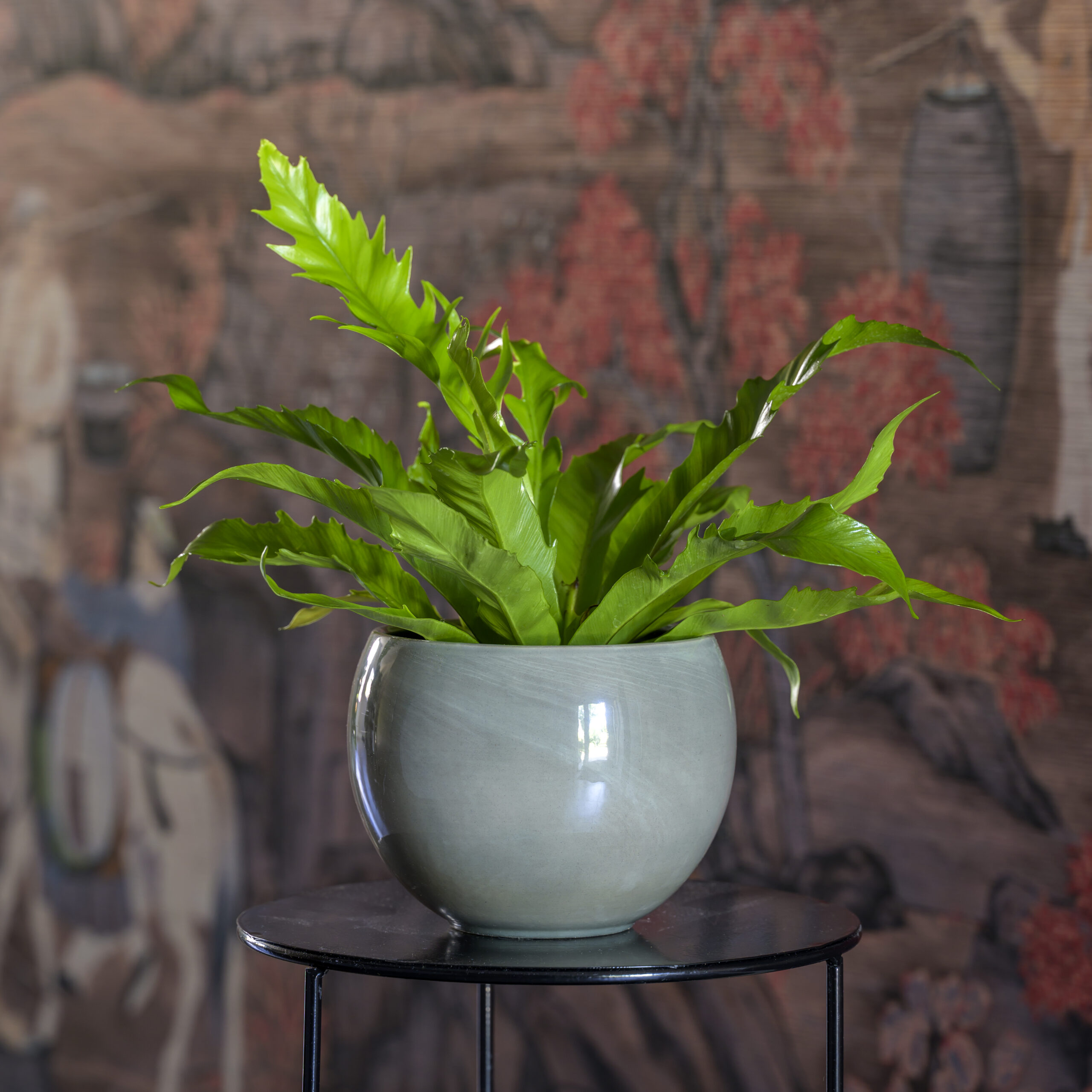 Modernne ümarakujuline glasuuritud lillepott kaunis pastelses värvitoonis.